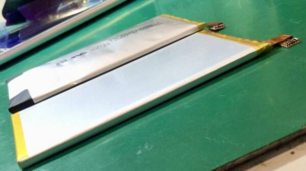 バッテリーが膨張してバックパネルを押し上げています。