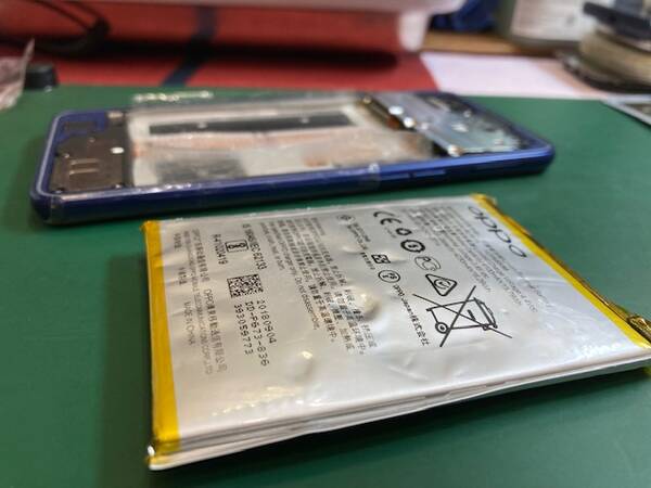 バッテリー膨張により、背面パネルが中央部を中心に盛り上がってしまっています!