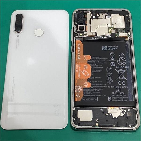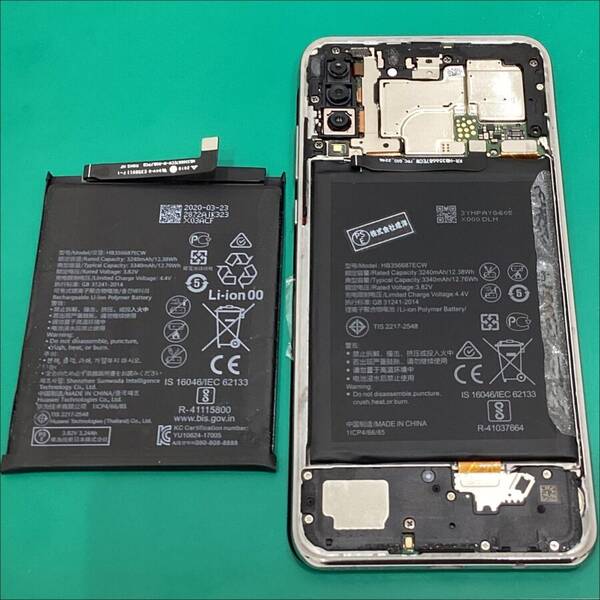 本日はアンドロイドスマホHUAWEI P30 liteのバッテリー交換中の写真になります。