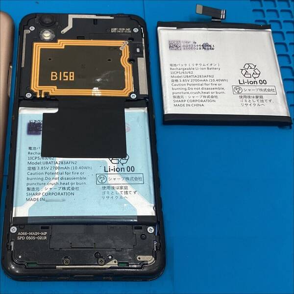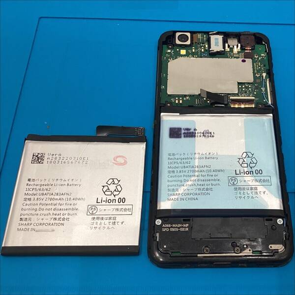 本日はアンドロイドスマホAQUOS sense liteのバッテリー交換中の写真になります。
